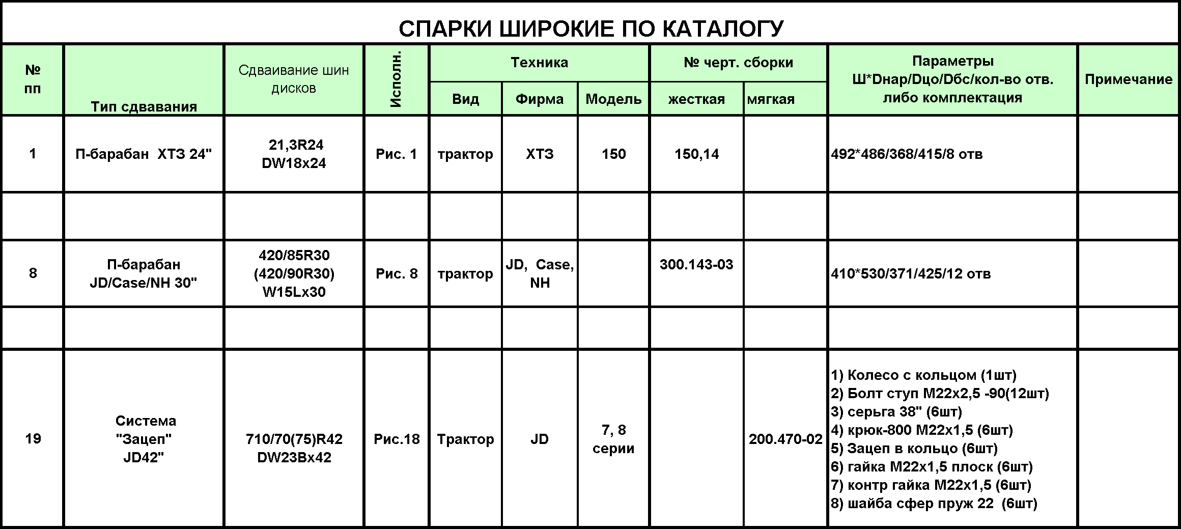 Предусматривают применение большого перечня разработанных за 20 лет конструкций, как жестких, так и мягких систем сдваивания для различных брендов тракторов, комбайнов, СХМ. Современный тренд развития этой подкатегории - сдваивание колес для сеялок, бункеров, комбайнов.